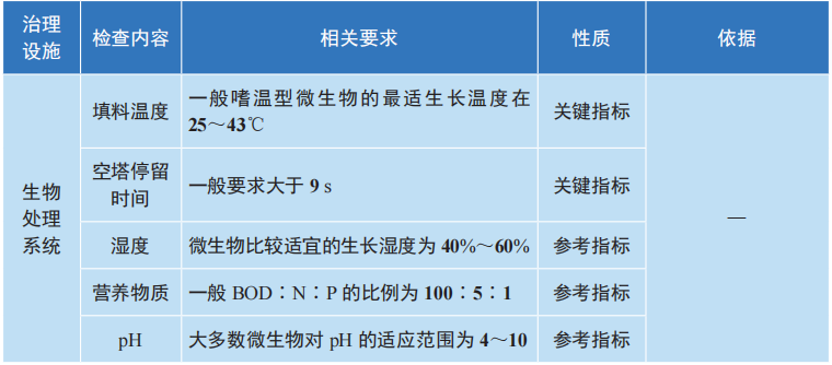 行參數可參照治理設施技術規(guī)范或廠家設計維護手冊,檢查要點可參考附表。