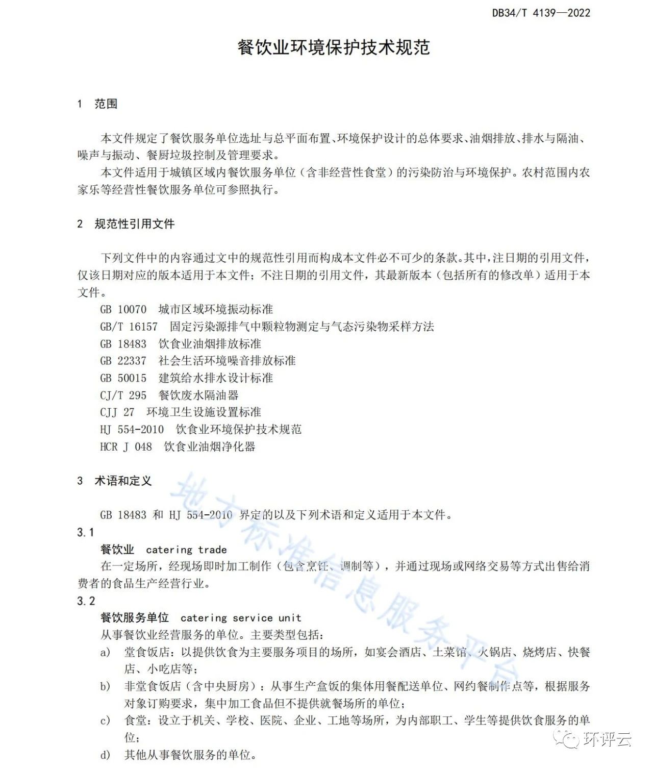 全文+解讀 | 餐飲業(yè)環(huán)境保護技術(shù)規(guī)范(DB34/T 4139-2022)