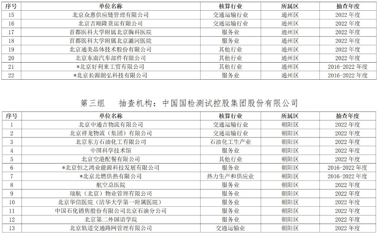 北京市生態(tài)環(huán)境局關(guān)于開展2023年第一批重點(diǎn)碳排放單位和一般報告單位抽查工作的通告